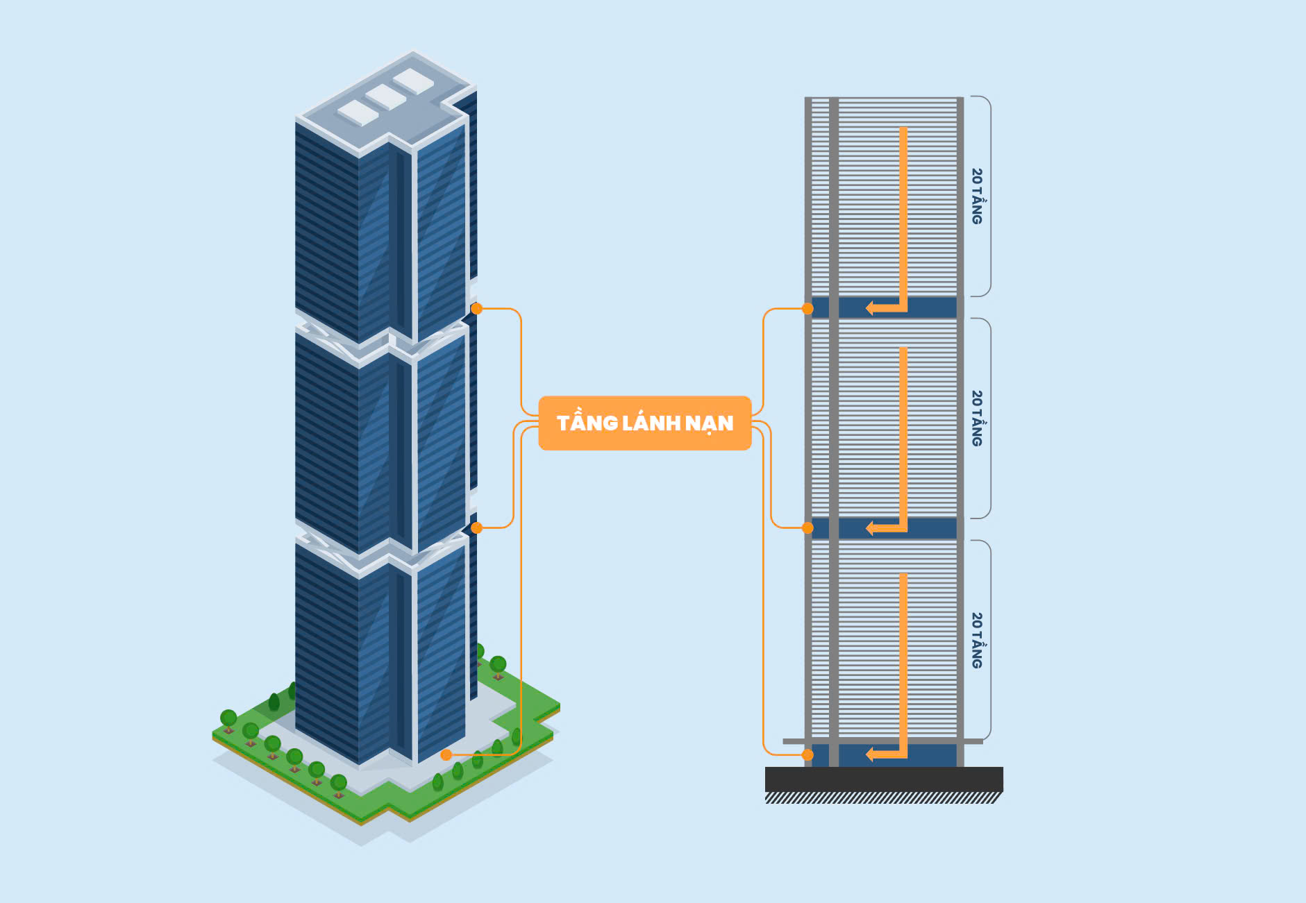 Tầng lánh nạn thường được bố trí theo từng khoảng tầng nhất định, tạo điểm dừng an toàn để cư dân trú ẩn và chờ hỗ trợ trong trường hợp khẩn cấp