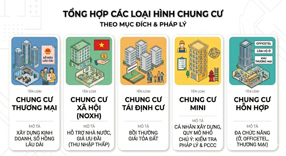Các loại hình chung cư theo mục đích và pháp lý